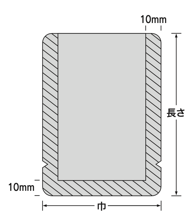 - シール仕様:両サイドと底部に各10mmのシール幅を持つ三方シール袋です。