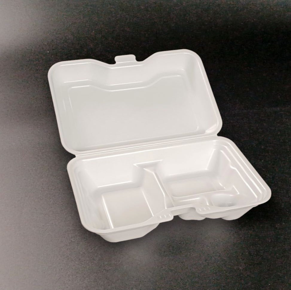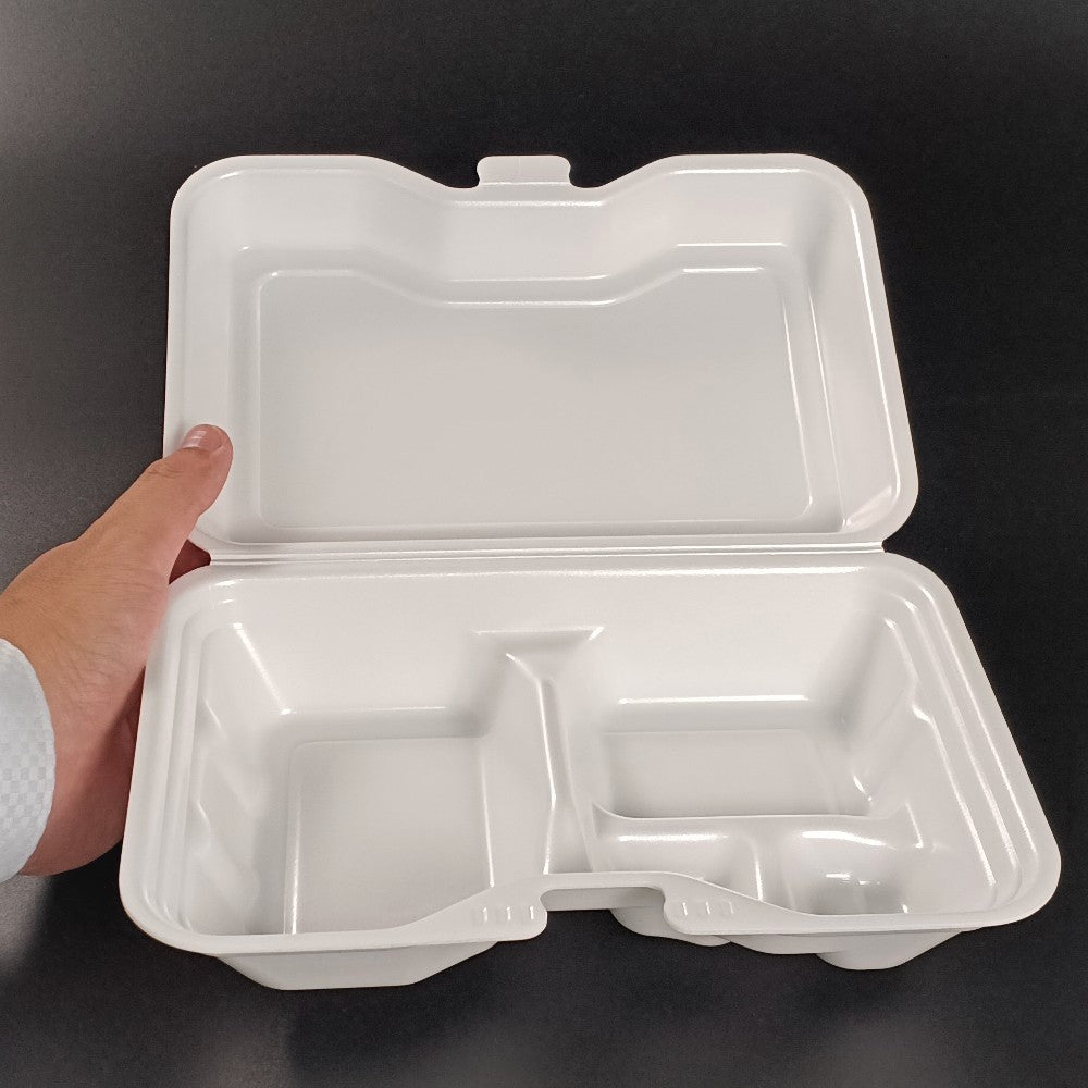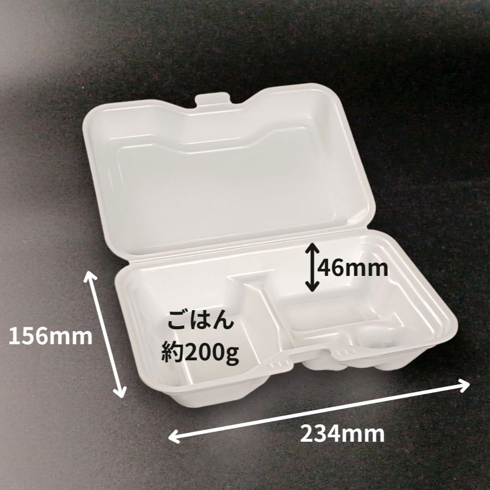 蓋がワンタッチで閉まる発泡タイプのランチBOX!ケータリングやランチボックスにおすすめの食品容器です。 シンプルかつおしゃれな容器なのでどんな料理にも合います!