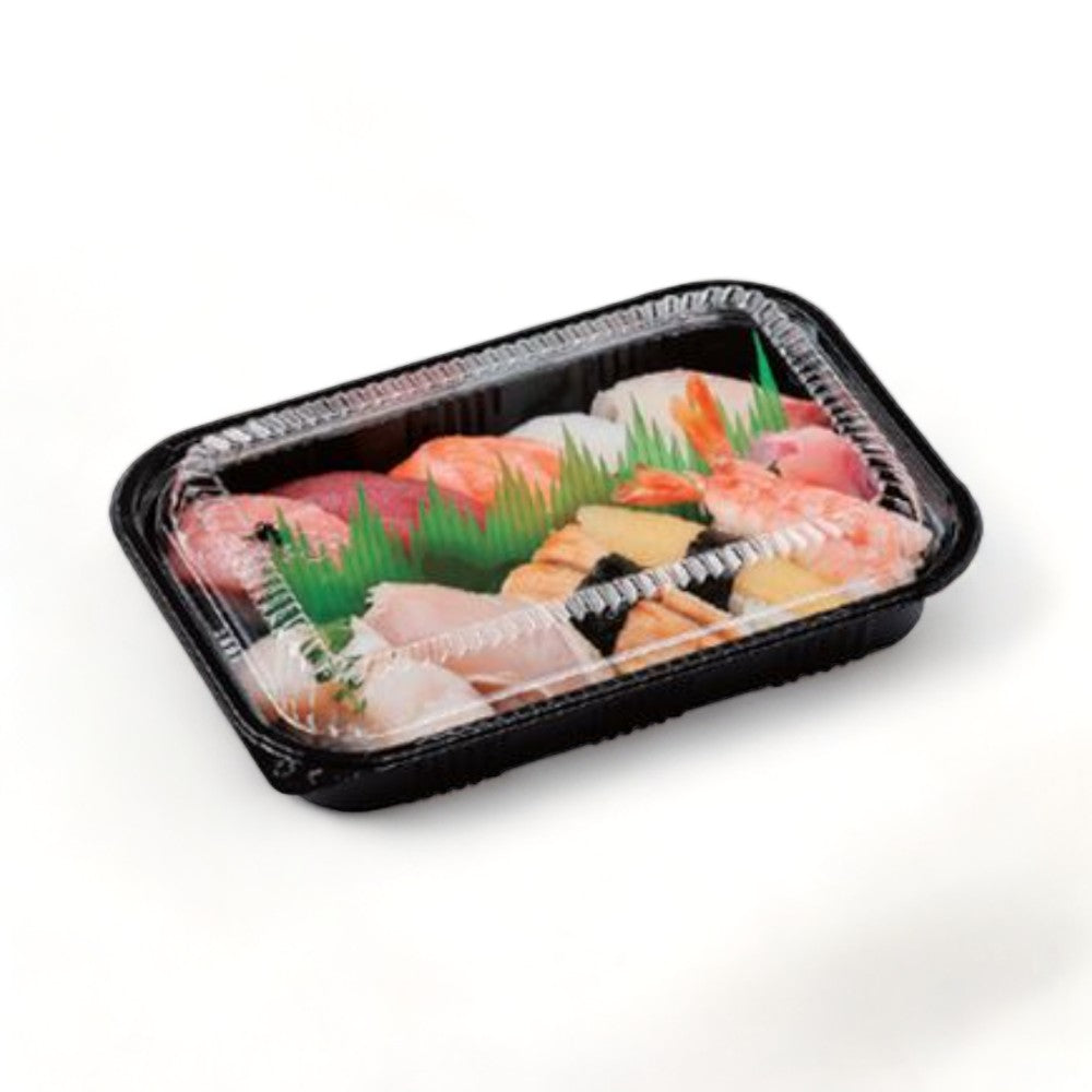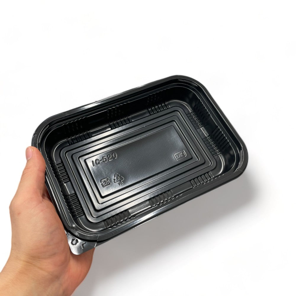 テイクアウト容器 MSD-IC-520本体 黒は、非発泡で寿司や揚げ物、ステーキなどさまざまな料理に使用でき、耐熱性がありレンジ加熱も可能です。おかずだけをテイクアウトしても便利で、多目的に使用できます。