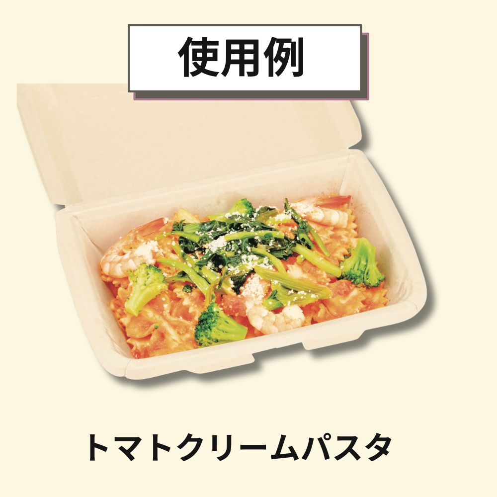 テイクアウト用にオススメの紙容器といえばコレ!本体と蓋が一体になった耐水・耐油使用の環境に配慮した当店イチオシ商品です。