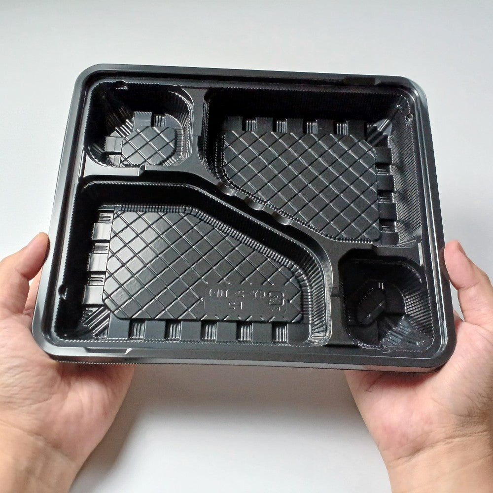 | 商品説明 | 【環境と使いやすさを両立した弁当容器】 1.環境に優しい薄肉化設計 独自の薄肉化技術により、材料使用量を削減しながらも高い強度を維持しています。これにより、製造時の資源消費を抑え、環境負荷の低減に貢献します。さらに、エコOPET素材の採用でCO₂排出量を約30%削減し、持続可能な社会の実現をサポートします。 2.電子レンジ対応&嵌合性で使いやすさ抜群 本体は電子レンジ対応で、食品の温め直しが簡単に行えます。また、本体と蓋の嵌合性が高く、閉めるときには「パチッ」としっかりと密閉できるため、汁漏れや食品の乾燥を防ぎます。 3.テイクアウトや大量陳列に最適な強度と安定性 リブ形状と適切な厚み設計により、複数段の積み重ねに対応する高い強度と安定性を実現しています。これにより、ピーク時の大量陳列や持ち運び時の安定性が確保され、業務効率の向上に貢献します。 |