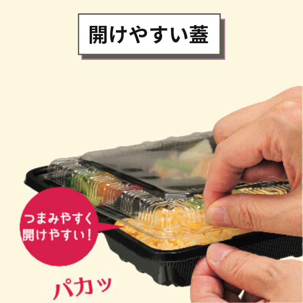 | 商品説明 | 【環境と使いやすさを両立した弁当容器】 1.環境に優しい薄肉化設計 独自の薄肉化技術により、材料使用量を削減しながらも高い強度を維持しています。これにより、製造時の資源消費を抑え、環境負荷の低減に貢献します。さらに、エコOPET素材の採用でCO₂排出量を約30%削減し、持続可能な社会の実現をサポートします。 2.電子レンジ対応&嵌合性で使いやすさ抜群 本体は電子レンジ対応で、食品の温め直しが簡単に行えます。また、本体と蓋の嵌合性が高く、閉めるときには「パチッ」としっかりと密閉できるため、汁漏れや食品の乾燥を防ぎます。 3.テイクアウトや大量陳列に最適な強度と安定性 リブ形状と適切な厚み設計により、複数段の積み重ねに対応する高い強度と安定性を実現しています。これにより、ピーク時の大量陳列や持ち運び時の安定性が確保され、業務効率の向上に貢献します。 |