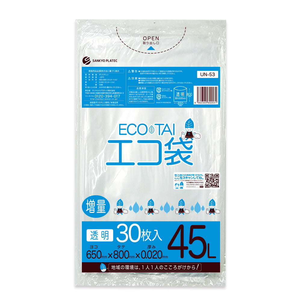 サンキョウプラテック ゴミ袋 UN-53 透明 45L (650×800×0.02mm)1袋30枚×30冊
