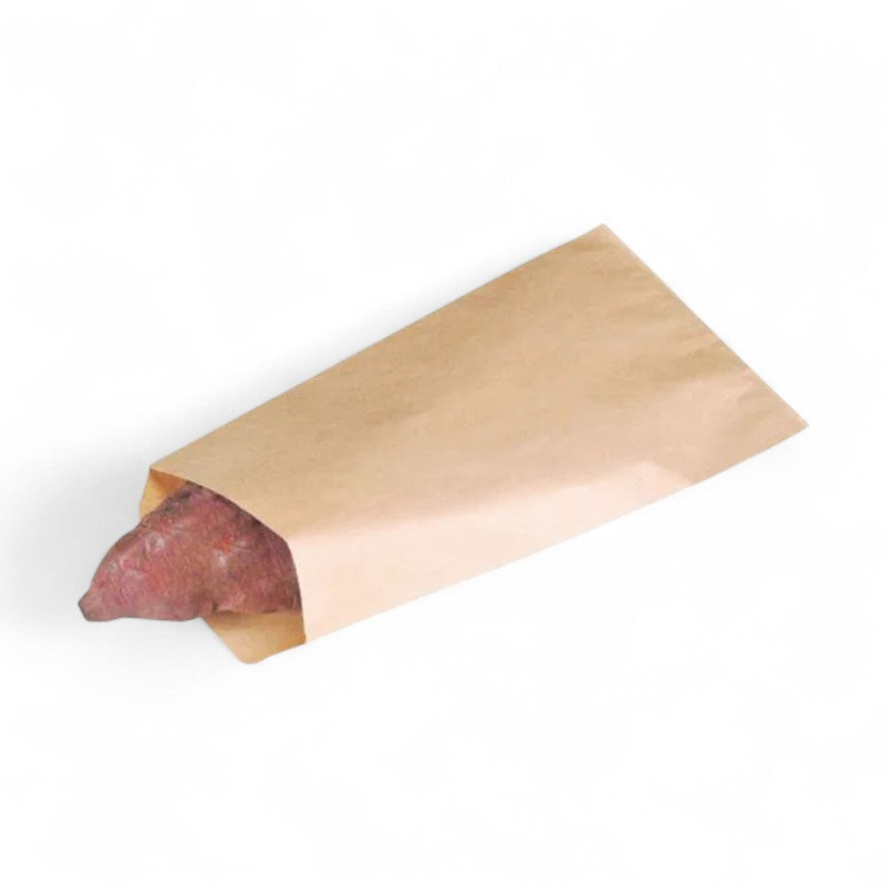 焼き芋袋 無地は、厚手の紙素材で作られており、耐久性に優れています。焼き芋の持ち運びや保存に最適なほか、そのしっかりとした紙厚を活かし、さまざまな用途にもご利用いただけます。シンプルな無地デザインで、使いやすさと実用性を兼ね備えた商品です。