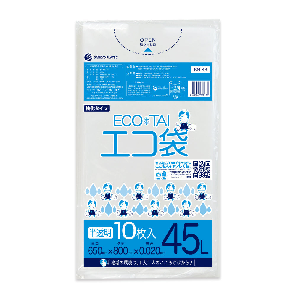 サンキョウプラテック ゴミ袋 KN-43 半透明 45L (650×800×0.02mm)1袋10枚×80冊