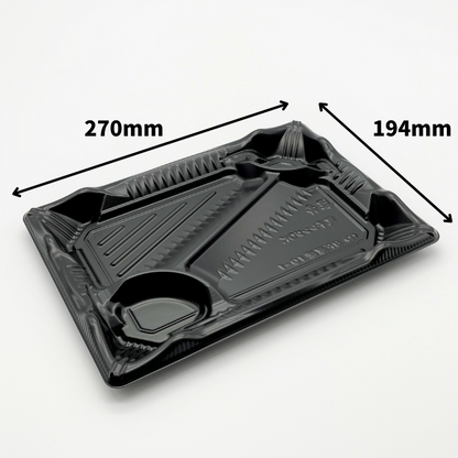 定番の黒い容器です。仕切りを大きくとっているのでとんかつやチキン南蛮などのメニューにも対応できます。