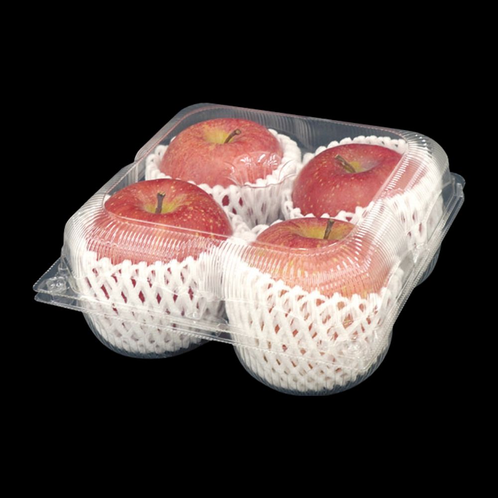 - 果物を優しく包む専用設計 丸い青果物の形状に合わせた特別な底面が、中身をしっかりとホールド。輸送中や陳列時の振動による荷傷みを効果的に軽減します。