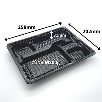 POINT3-----黒色の5.つ仕切り弁当で様々なメニューにピッタリ!ご飯は160g入ります