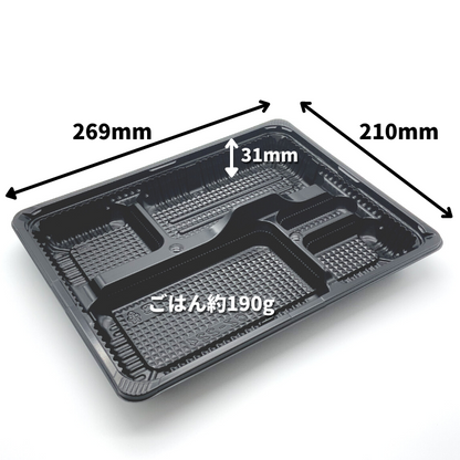POINT3-----黒色の5.つ仕切り弁当で様々なメニューにピッタリ!ご飯は160g入ります