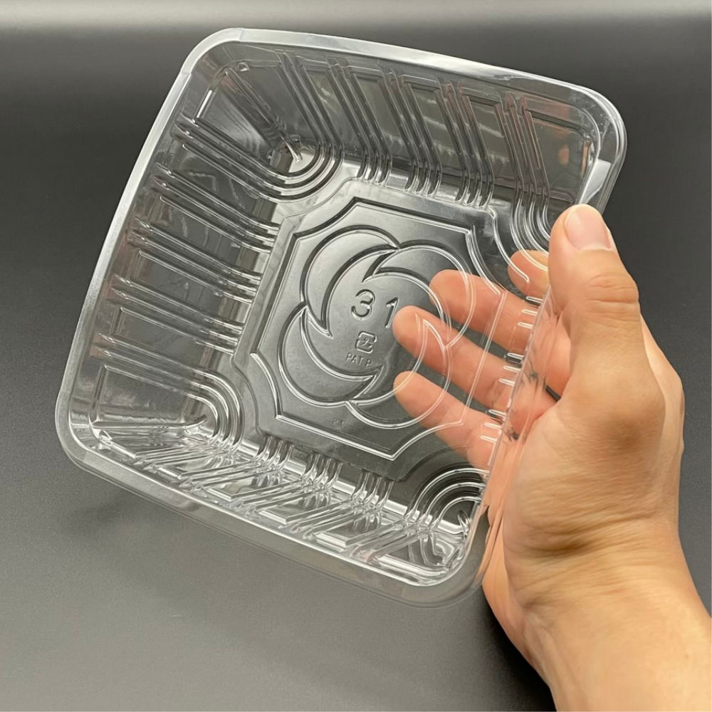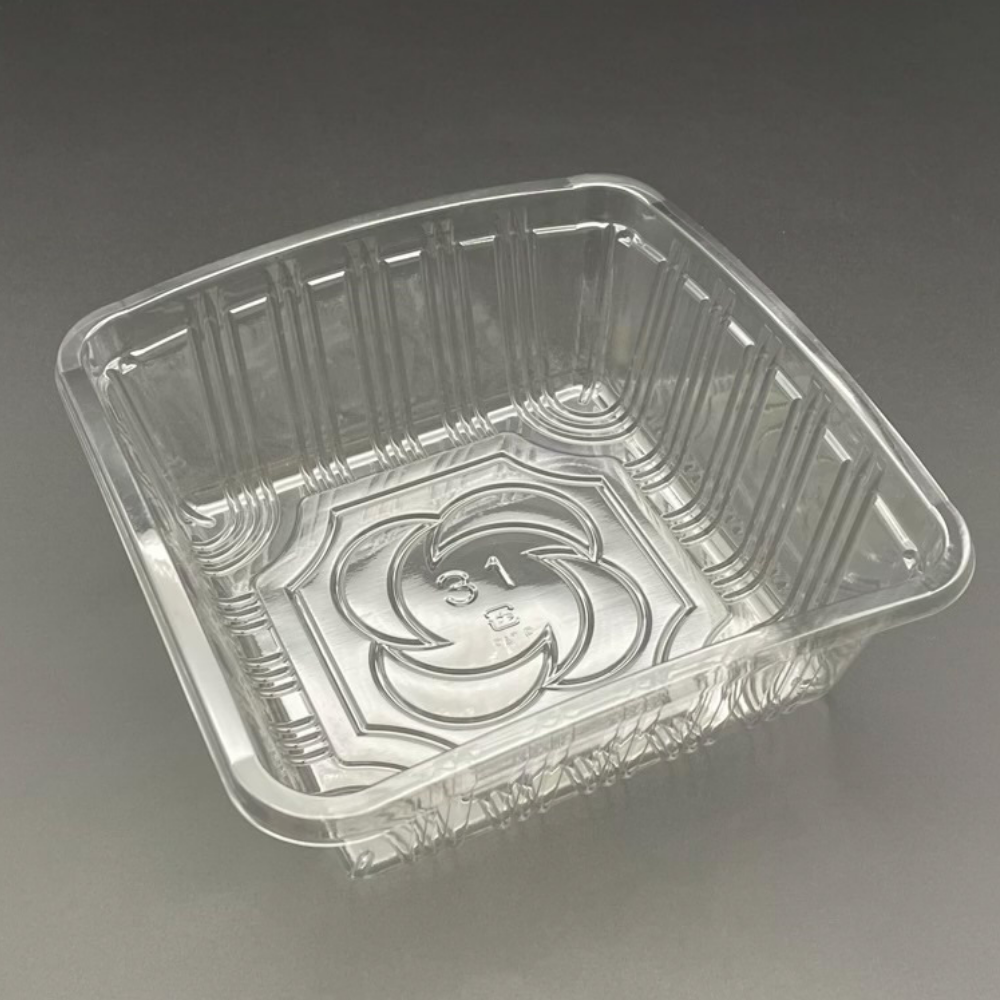 透明性の高いA-PETを素材としているので、果物を容器に入れて陳列しても見栄えが良く、商品保護も兼ね備えています。