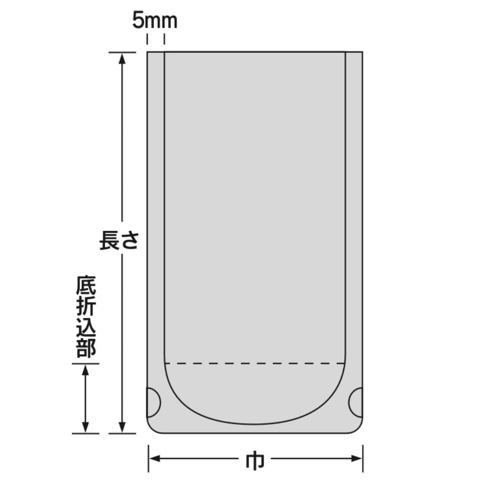 シール幅は両サイド各5mmの三方シール仕様で、外装袋にはバーコードが印刷されています。