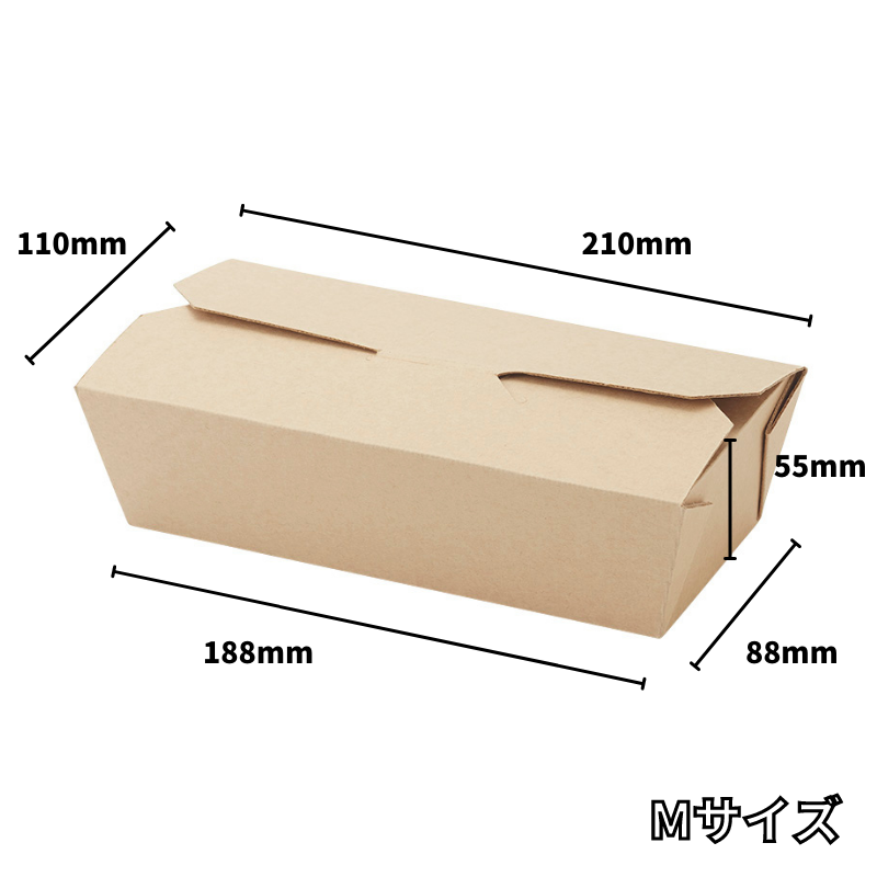 ナチュラルテイスト好きにオススメな紙製の長方形食品箱といえばこれ。 耐油性もあるので、幅広いメニューでお使いいただけます。