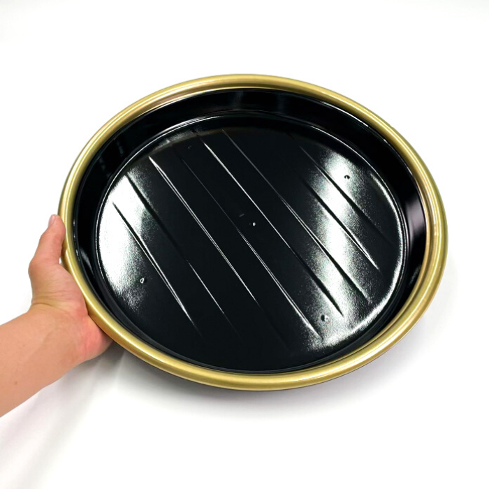 光沢のある黒に金の縁取りは、お寿司を引き立てる事間違いなしです。