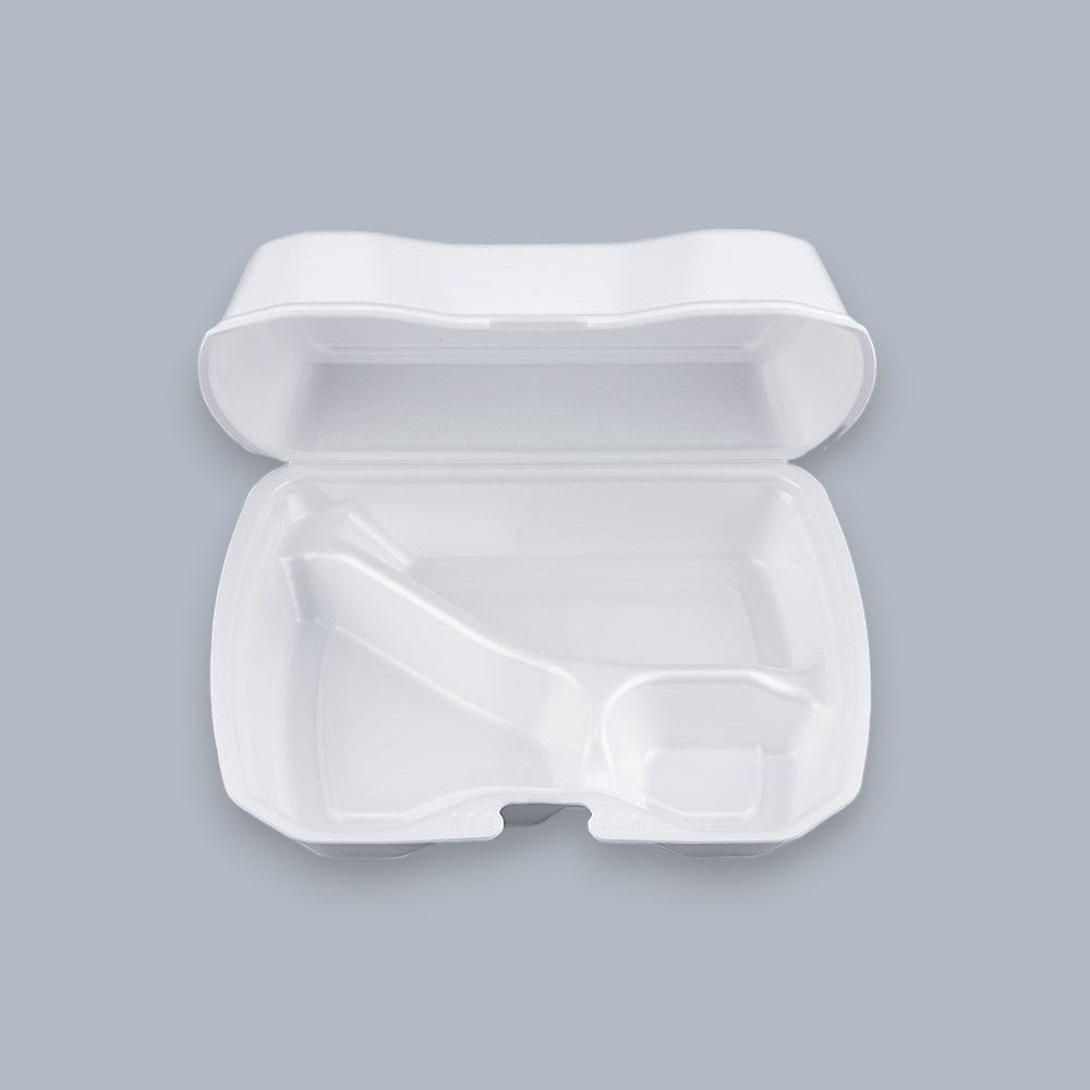 蓋がワンタッチで閉まる発泡タイプのランチBOX!ケータリングやランチボックスにおすすめの食品容器です。 シンプルかつおしゃれな容器なのでどんな料理にも合います!