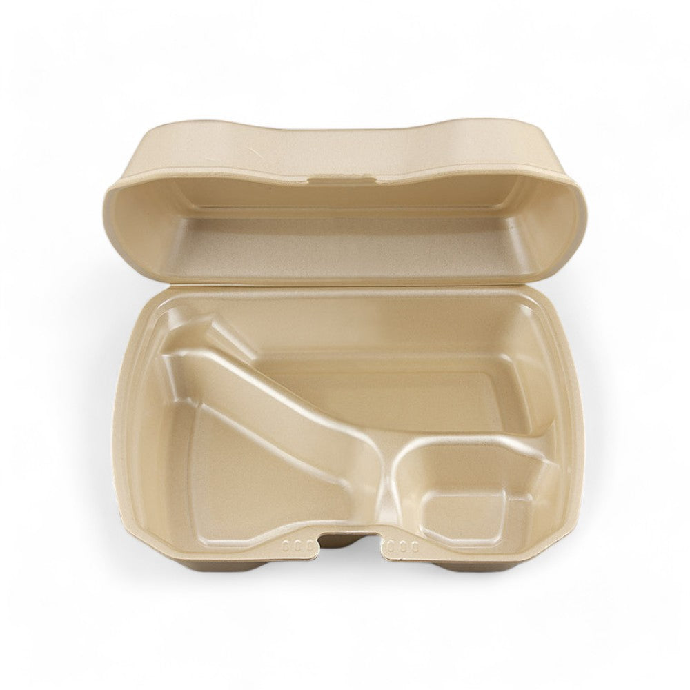 蓋がワンタッチで閉まる発泡タイプのランチBOX!ケータリングやランチボックスにおすすめの食品容器です。 シンプルかつおしゃれな容器なのでどんな料理にも合います!