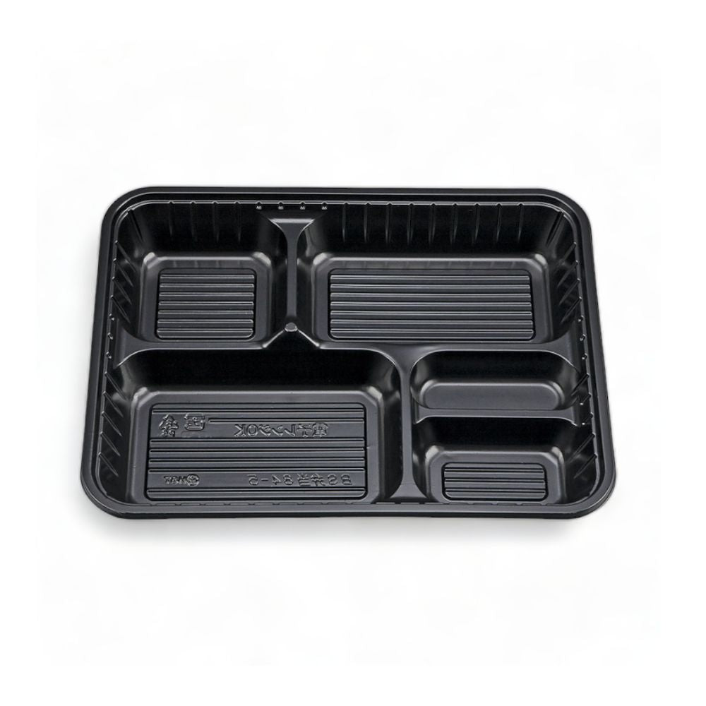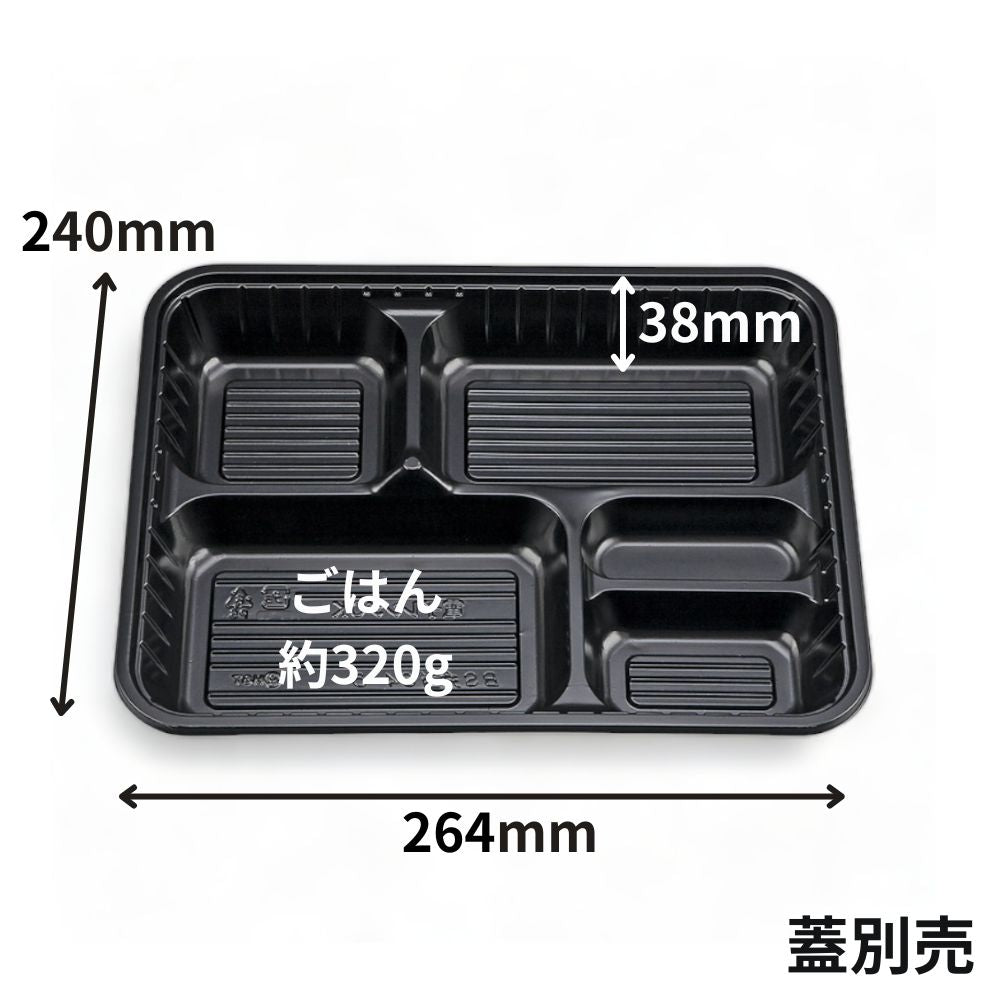 お弁当屋さんや飲食店で定番の使い捨て弁当容器です。5つの仕切りが付いているので、ご飯とおかずをバランス良く盛り付けることができます。