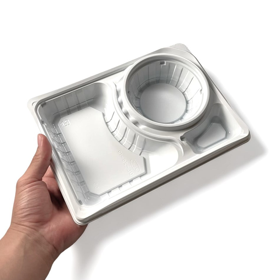 そんな希望をかなえた容器です。主菜部分がかん合で、汁もの惣菜などに最適な弁当容器です。