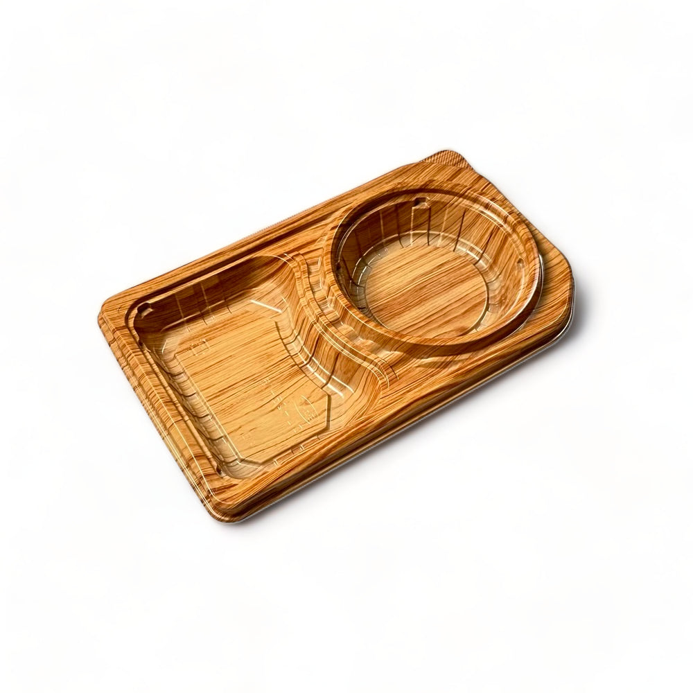 そんな希望をかなえた容器です。主菜部分がかん合で、汁もの惣菜などに最適な弁当容器です。