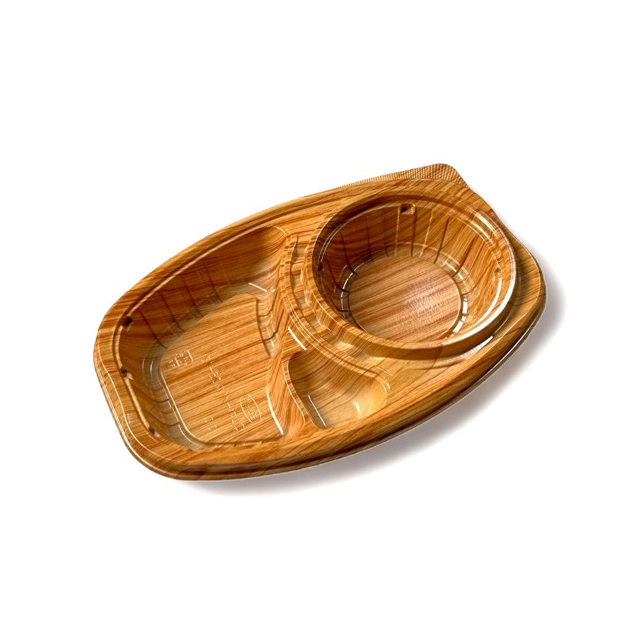 そんな希望をかなえた容器です。主菜部分がかん合で、汁もの惣菜などに最適な弁当容器です。