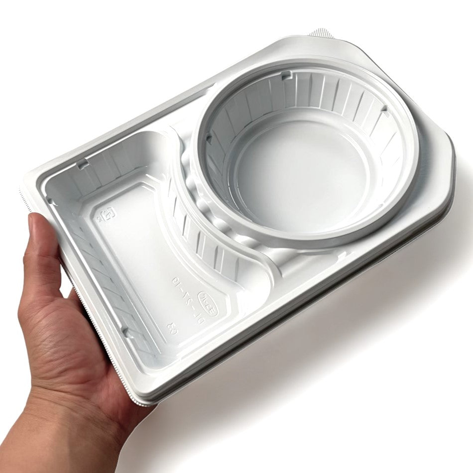 そんな希望をかなえた容器です。主菜部分がかん合で、汁もの惣菜などに最適な弁当容器です。
