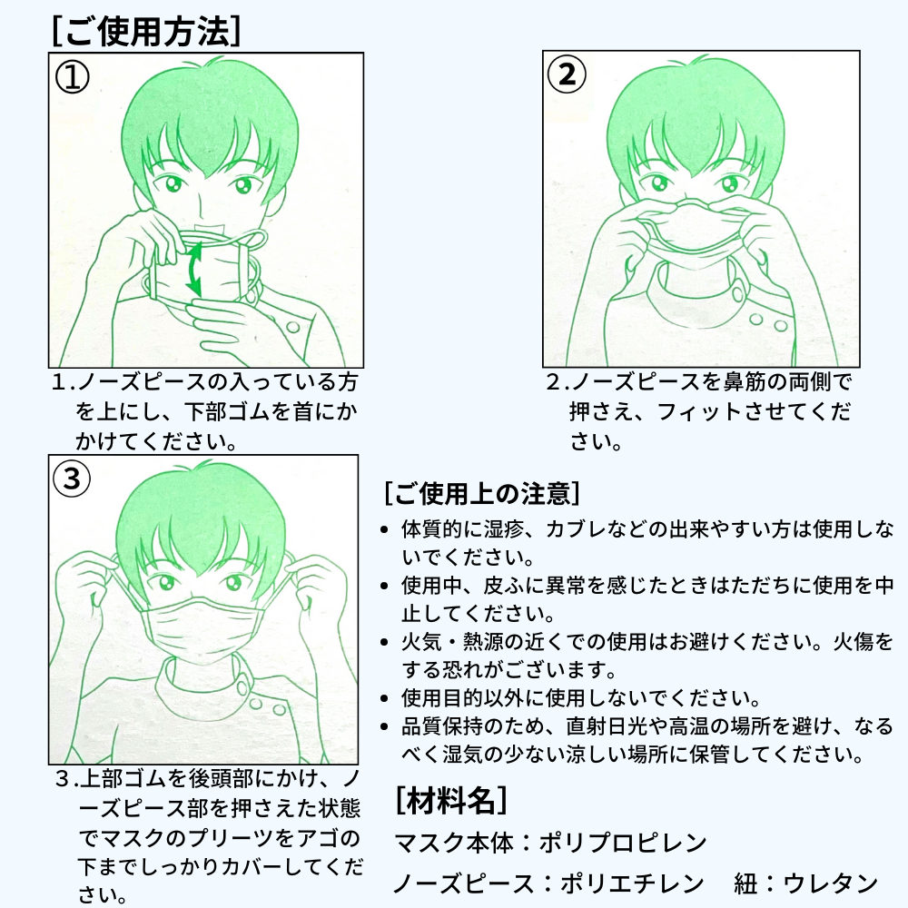 | 材質 | マスク本体:ポリプロピレン\ノーズピース:ポリエチレン\紐:ウレタン |
