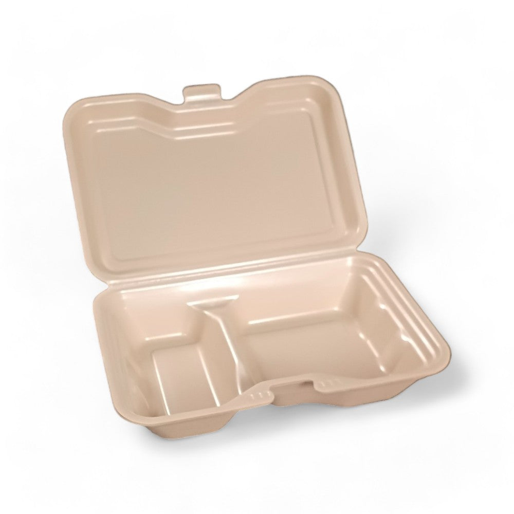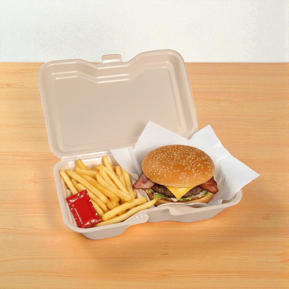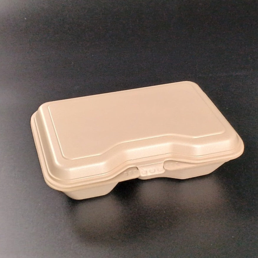 蓋がワンタッチで閉まる発泡タイプのランチBOX!ケータリングやランチボックスにおすすめの食品容器です。 シンプルかつおしゃれな容器なのでどんな料理にも合います!