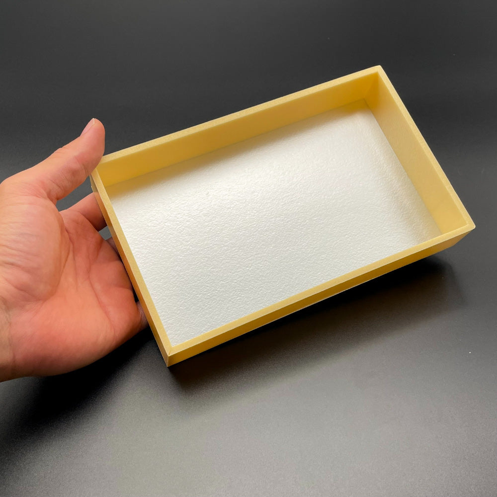 木目調で高級があります。発砲素材と底面が紙で出来ているためとても軽量です。