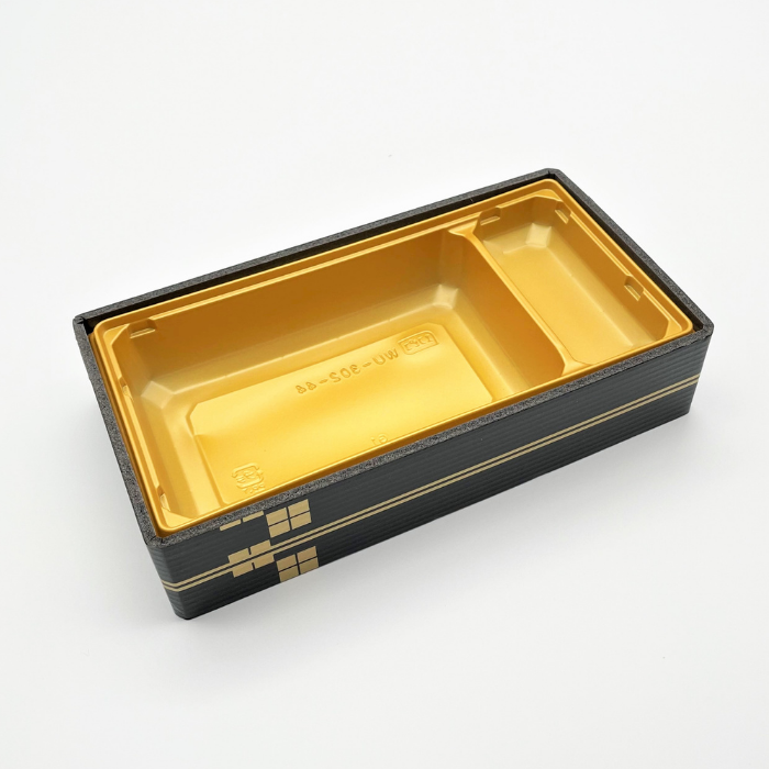 電子レンジ加熱が可能な折箱重。 商品メニューによってバリエーション豊富な柄をご用意していますので、付加価値のある商品作りにご利用ください。
