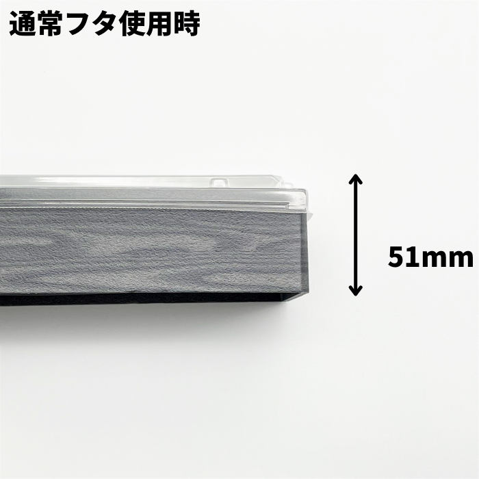 通常フタ使用時で高さが約51mm、高フタ使用時で約62mmになります。