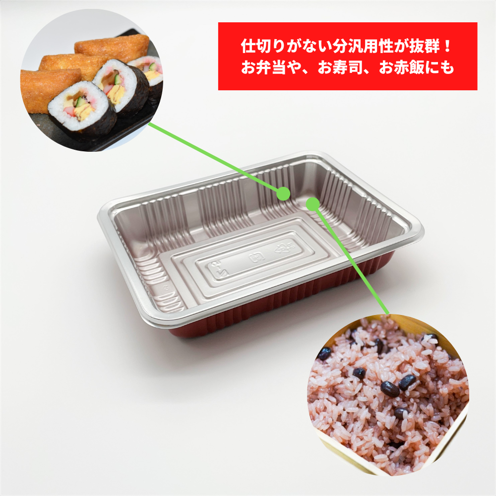 ベストセラーの定番容器です。お弁当、お赤飯、おはぎ、お寿司など、仕切りがない分使い勝手はバツグンです!
