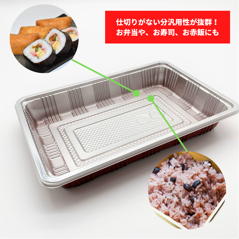 ベストセラーの定番容器です。お弁当、お赤飯、おはぎ、お寿司など、仕切りがない分使い勝手はバツグンです!